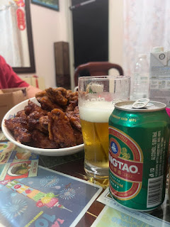 我吃饱了,盘腿坐着划手机。他在一旁继续啃最后那几块炸鸡。